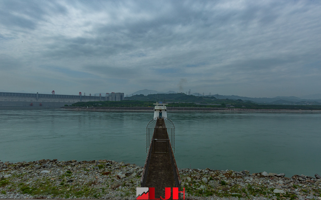 在这片观景区内,沿着江堤走上一小段,能见到一座伸向江中的水文观测站,很小,伸向江心的栈桥也禁止游人踏入。但这座水文站却跟三峡大坝密切相关。这座被称之为“三斗坪水位站”,设立于1953年,原本它的位置也不在这里。随着三峡工程的开工建设,水位站不断从原有位置渐渐挪到了现在的三斗坪镇高家溪村,也成为三峡水利枢纽下游的第一个水位控制站。