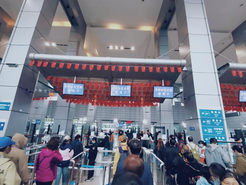 过了码头的安检,四位制服笔挺的小哥哥已经在登船处恭候多时了,很多小姐姐等着在这拍照。