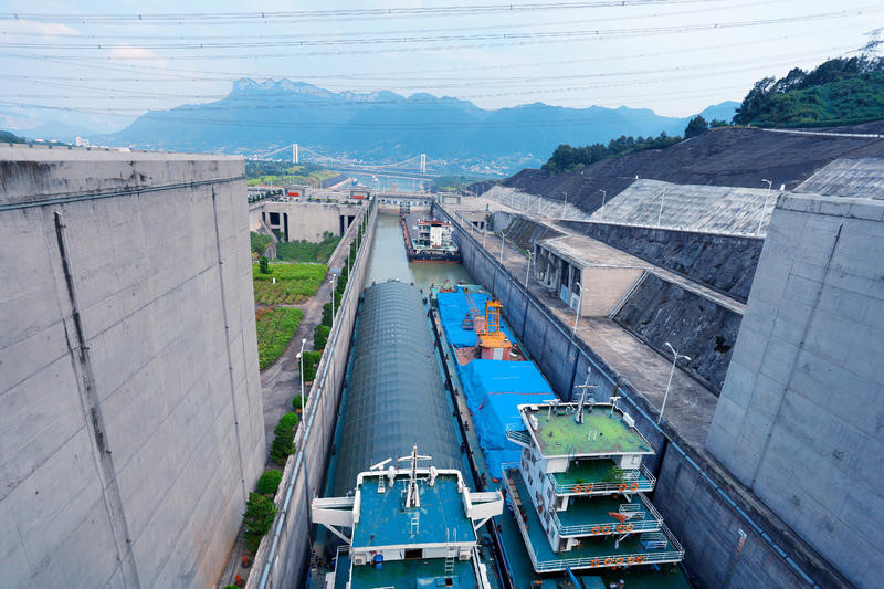 五级船闸,观赏水涨船高的乐趣,孩子们看到有船只经过的时候,都是在那大声的呼喊,企图和在船上的人产生一些互动。永久船闸一共有24扇人字闸门。三分之二的人字门高36.75米,宽20.2米,厚3米,重达850吨,面积接近两个篮球场,其外形与重量均为世界之最,号称“天下第一门”。