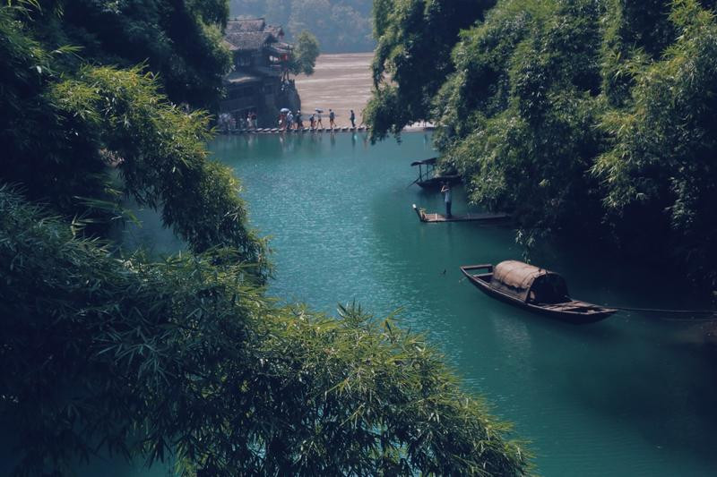 一肩挑两坝,一江携两溪。美丽的三峡人家就位于长江三峡之一的西陵峡畔,依山傍水,风情如画。在龙进溪与长江的交汇处,几只古老的帆船迎风而立,溪水碧绿,林木苍翠,斑驳沧桑的龙溪桥横跨其上,几只小渔船静静地停泊在桥下。一面是清澈的溪水,一面是浑浊的江水,在一个维度,却又似乎处在两个不同的世界。