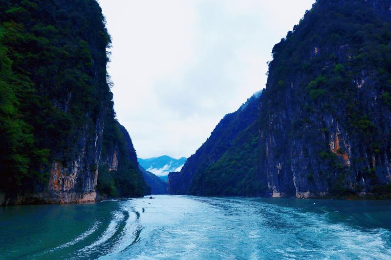 山峰紧束,绝壁峭耸,而峡谷之中的悬棺更令人啧啧称奇,在几千年之前,这些悬棺是如何被挂到几百米高的山峰之间,即便是在现在也都是一个不小的工程。听导游介绍,悬棺越高,子女越孝,也有升官发财的寓意。