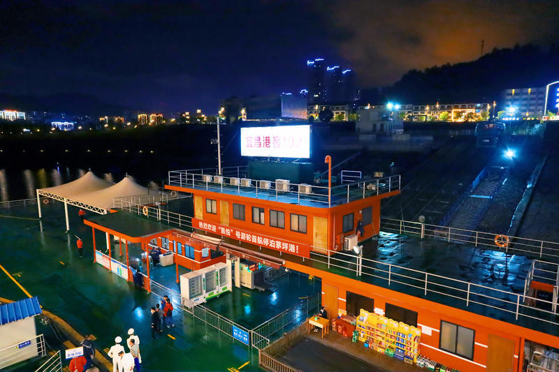 秭归港的客运缆车,在夜晚中缓缓行驶着,很像香港或者某个地方的场景,如果这时候来一场TVB剧的瞬间,或者发哥的电影片段,真的超有这种感觉。