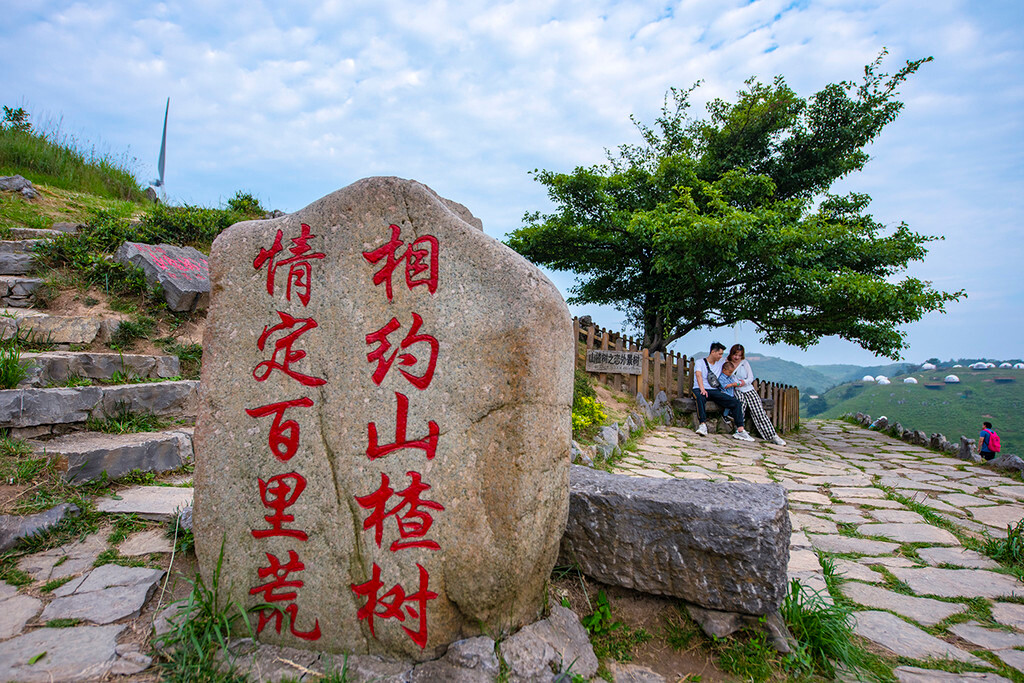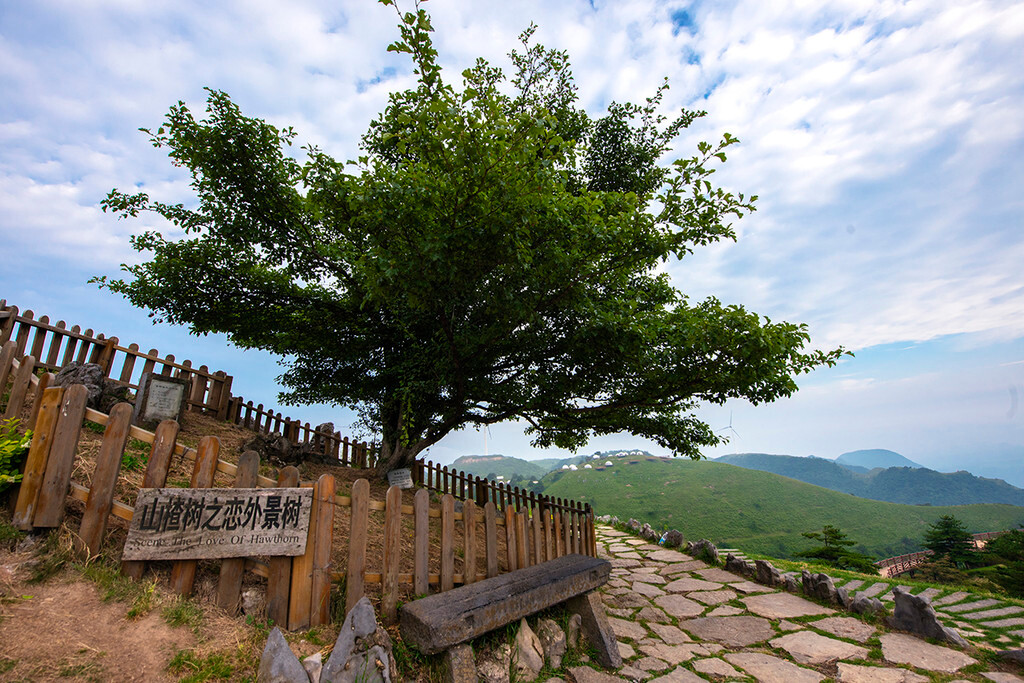吹着小风,慢慢的在山间行走,舒服的温度秀丽的风景,每一眼都是惬意。在百里荒的风光里,特别值得单独介绍一下的有棵树。这是张艺谋导演的电影《山楂树之恋》里那棵山楂树,这棵树见证了静秋和老三的纯美爱情,这棵树也是周冬雨窦骁事业腾飞的起点。