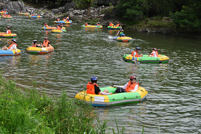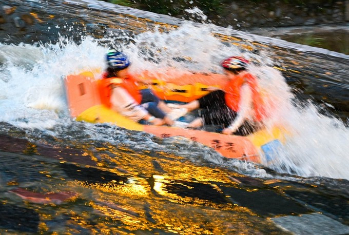 景区观光车不仅免费而且车次很多,沿途都可以上车、下车。漂流河道6.5公里,沿途在水流舒缓处,设有补给站,提供姜糖水、烧烤、宜昌特色小吃等。身上备点零钱或者用防水袋带着手机,支付就方便了。推荐带手机,在回水湾,水流平缓,也可以拿出手机拍些沿河两岸的峡谷风光。晴天,蓝天白云,峰峦叠嶂,千峰竞秀,将军柱一柱擎天最为奇特。雨天,云雾缥缈,宛若仙界,气象万千。最重要的,记录生活,闲来无事时,回味那一刻的美好,历历在目。夜间漂流是新晋的网红。更浪漫更刺激,更受情侣喜爱。光线和视线没有白天好,在水流急湍处,漂流皮艇横冲直撞,左右突击,惊险刺激,肾上腺素可以更急速地飙升。夜漂路程比日漂短,省略了约3公里,而省略的部分,落差更大,体验更深刻,所以有的游客,日漂夜漂一个都不放过,一次漂个够,体验更丰富。