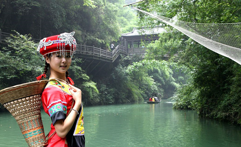 相信很多人开车经过湖北高速的时候,市场会看到“宜昌三峡人家”的广告宣传语,一个身穿民族衣服的少女撑着油纸伞背着背篓,站在小舟上畅游在这青山绿水之间,周边青烟缭绕,美如画卷。