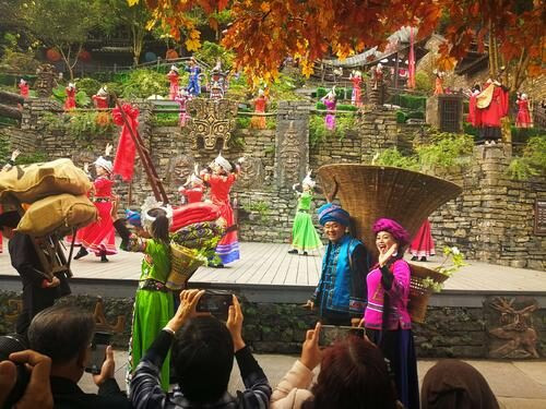 会到龙进溪,穿过一条走廊,我们是选择的步行到达本次旅程中最后一个景点,巴王寨,巴王寨是下午三点半的表演,正好赶到节目还没开始,因为人实在是太多,所以前排座位根本抢不到,只能站在后方观看表演,整场表演时间不长,表演形式比较丰富,还是比较值得一看吧。