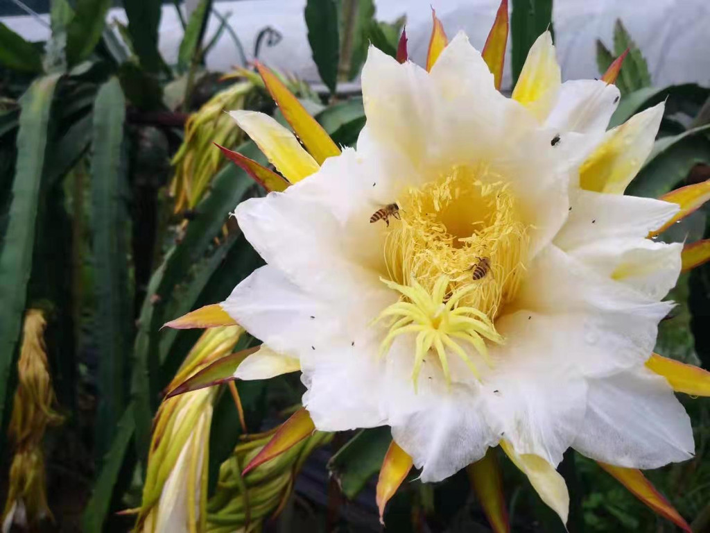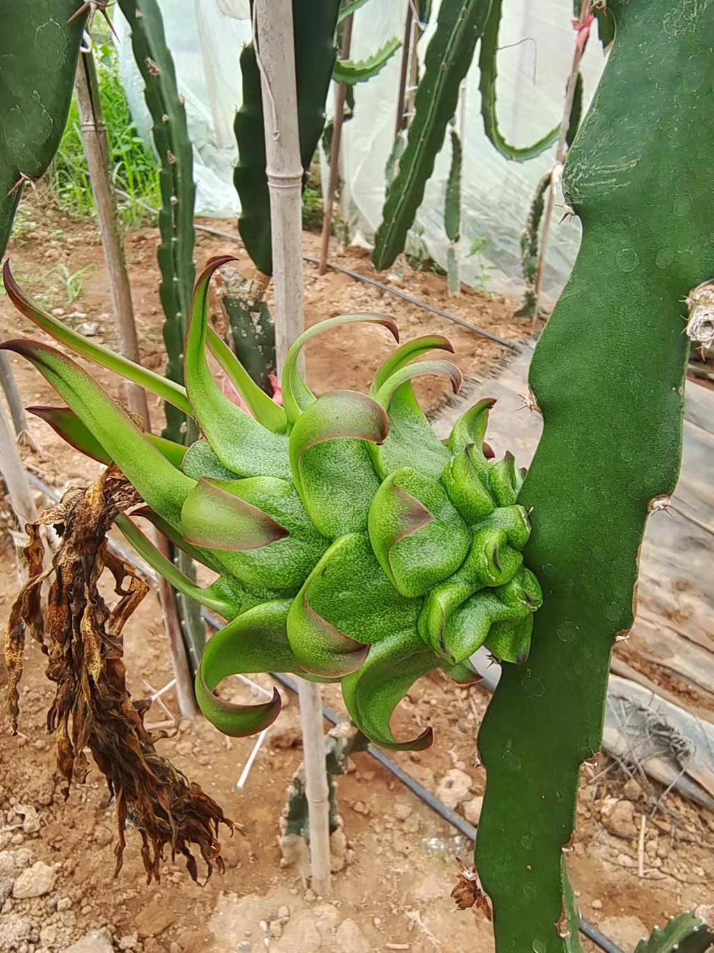 在摘葡萄的路上发现有好几个大棚,在外面看不出来是啥东东,在好奇心的驱使下,我们拨开棚帘看了一下,映入眼帘的居然是火龙果,一直以为这玩意儿只产自热带,没有想到在海拔这么高的地方也能出现,简直太意外了!