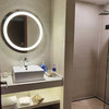 卫生间采取的是干湿分离,设计很棒,这面镜子化妆简直是绝绝子,智能调光,你们看台面上配备的蓝月亮洗衣液和床头的免费充电线全是为客人考虑的细节。
