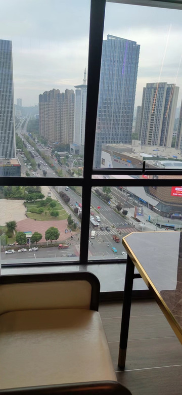 房间设施:房间面积大概35个平方,是比较大的那种,还有浴缸,落地窗外就是宜昌中南路商圈十字路口,高空俯瞰就是车水马龙,酒店隔音做的不错,所以窗外的声音基本没有,300+的价格住这个酒店还是很不错的,智能电视投屏看电影不要太舒服,倚靠酒店19楼的高空餐厅,喝一杯咖啡——优雅。