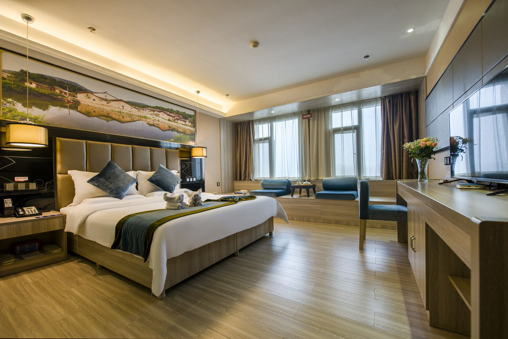 关于住宿我选的是丽橙酒店·智(宜昌火车东站五一广场店),酒店离宜昌火车东站车程8分钟,办理入住时还有工作人员热情的赠送清热茶饮,房间宽敞明亮,卫生打扫干净,早餐是中西式自助早餐, 品种丰富,吃完后就可以在酒店打车起步价8元到达宜昌火车东站旁边的车展乘坐前往朝天吼漂流大巴,车上就是就地拼团的散客,车上还有导游负责讲解,车价包含讲解,这点很nice。