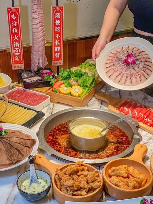 火锅形式,中间是豆浆,味道还是不错的,黑鱼没得鱼刺,吃起来不用担心被鱼刺卡,店子是水悦城店