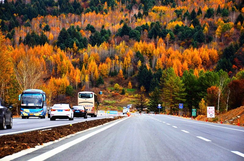 汤伊公路进入9月中旬以后就到了色彩斑斓的秋季,沿途路上的五花山非常美,喜欢拍照的朋友一定要遵守交规,不要停在应急车道上(罚款加扣分)下图为2019年十一黄金周期间上甘岭路段。