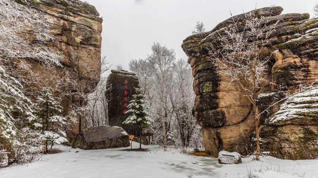 且石在林中,林在石上,石在雪中,雪在石上,气势磅礴,景色怡人,是中国罕见的地质奇观。冬季被大雪覆盖后,一个个晶莹剔透的雪蘑菇分外妖娆。