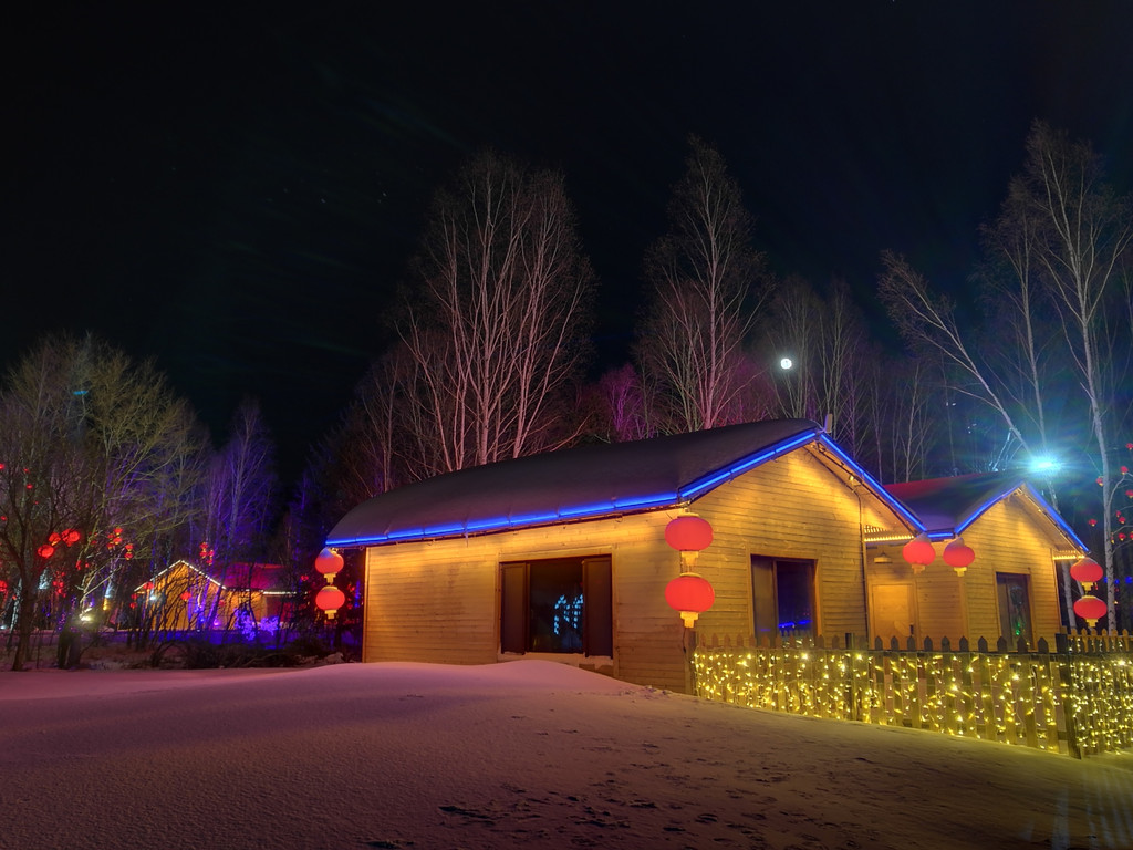 游客们不仅可以在这里住温暖舒适的雪村木屋别墅,又可以滚冰泼雪,一起疯玩,更能品尝到景区特色美食…… 夜幕降临,华灯初上,凤凰楼阁,霓虹闪烁。还有各不相同的梦幻木屋,他们都起一个好听的名字……凤凰台、林语堂、清幽居、海东青、醉四方、闲雅山房;还有花湖庭院、湖光山色、听涛慕雪、临湖茗轩!