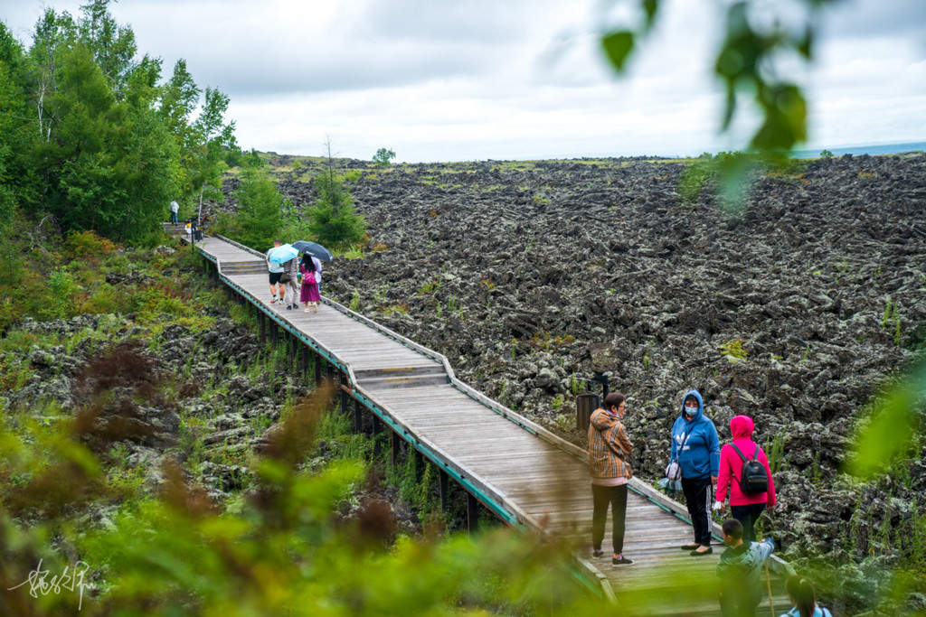 我们的一日游路线:老 黑山 爬高俯瞰活火山口➔乘船游荡在石龙河上➔行走在木栈道之上观赏丽泊、晶泊与碧泊➔带上空矿泉水瓶去北饮泉喝一口当地带气泡的天然矿泉水”