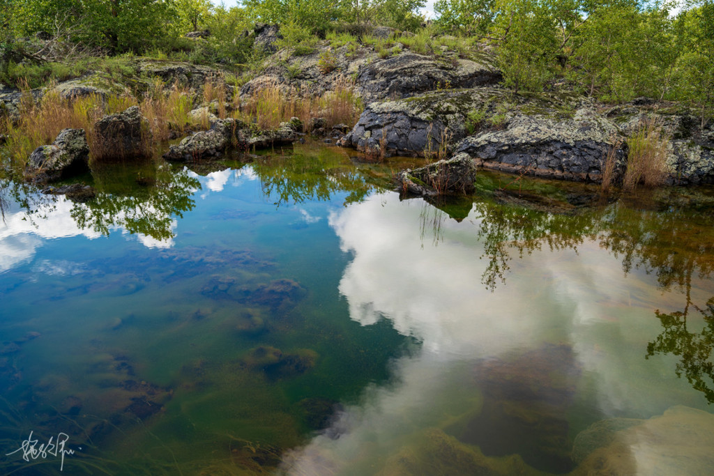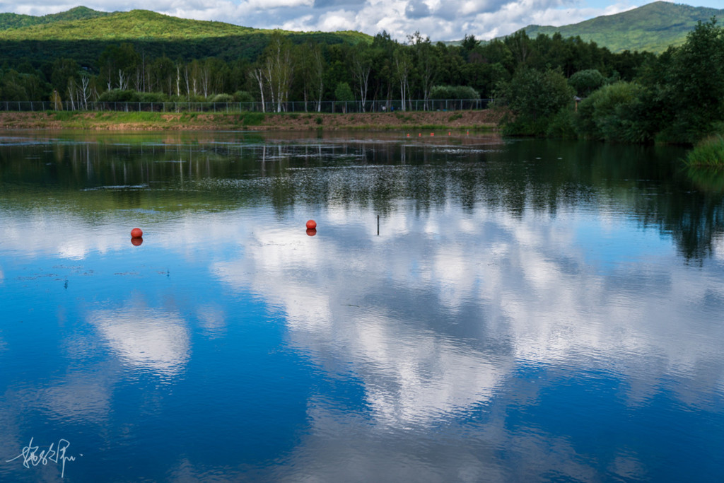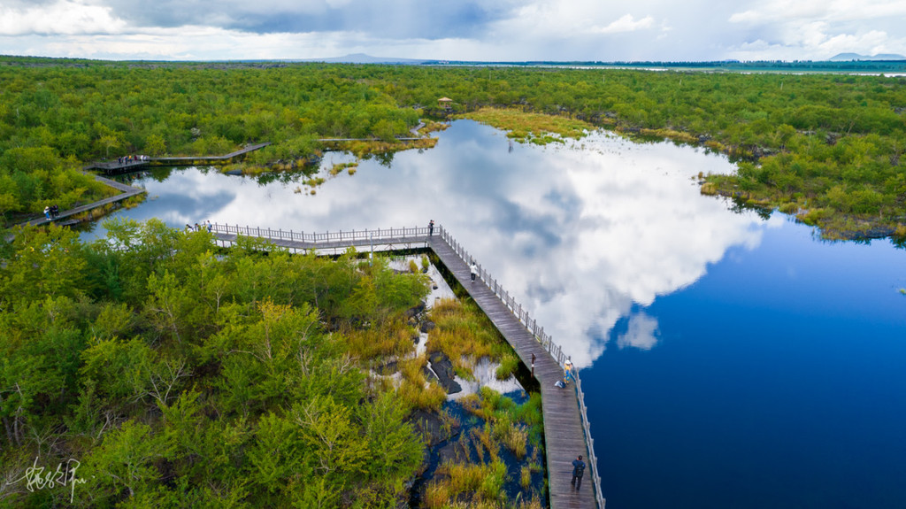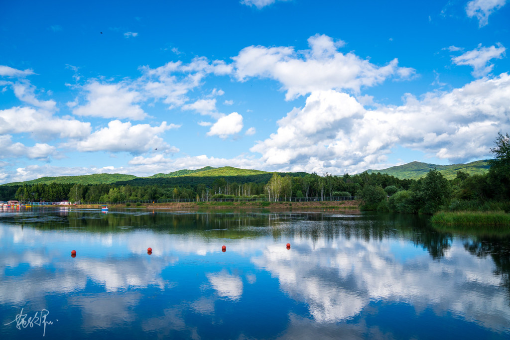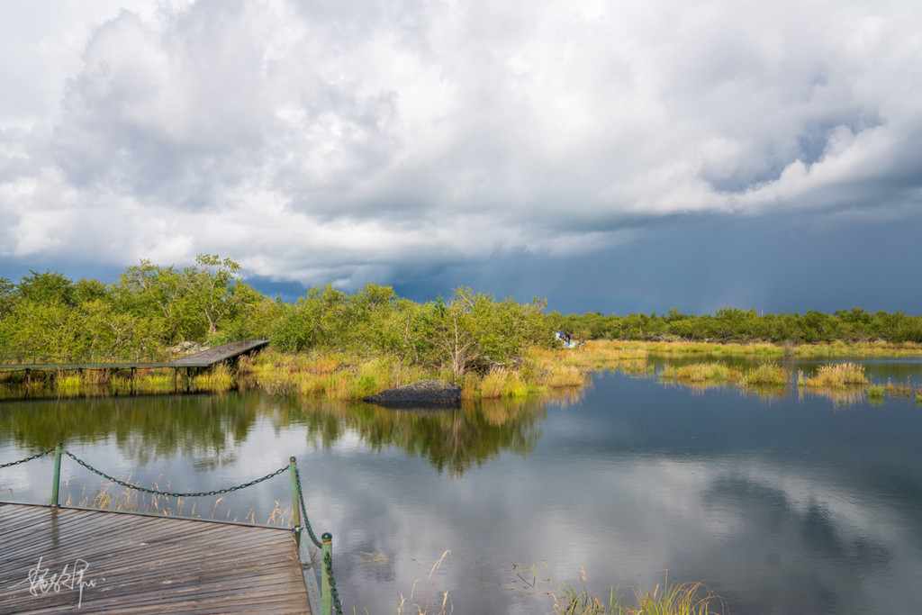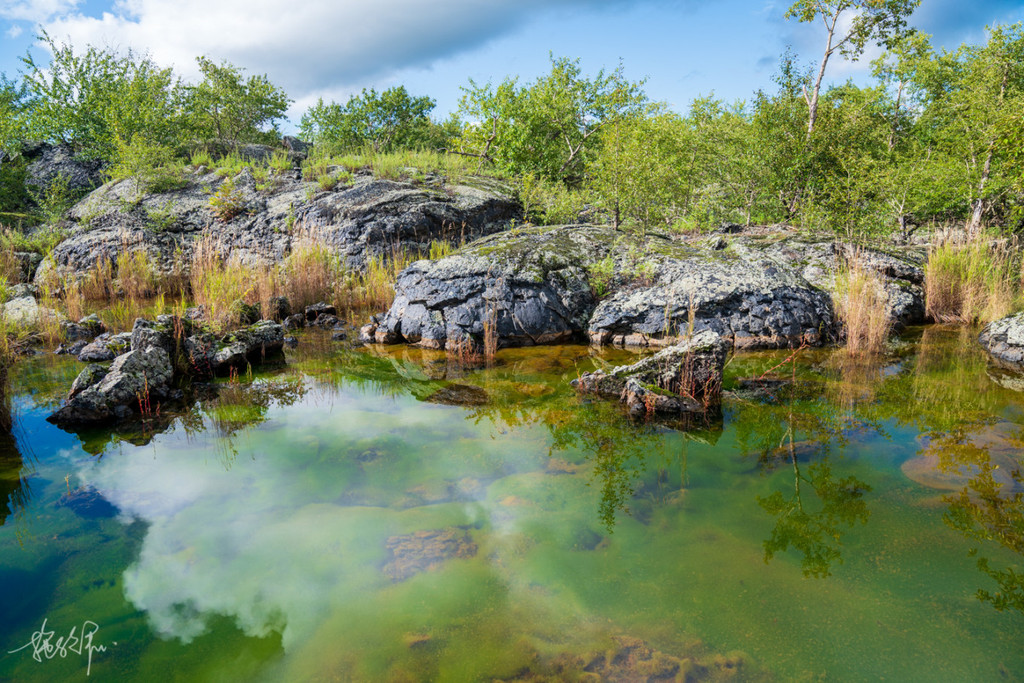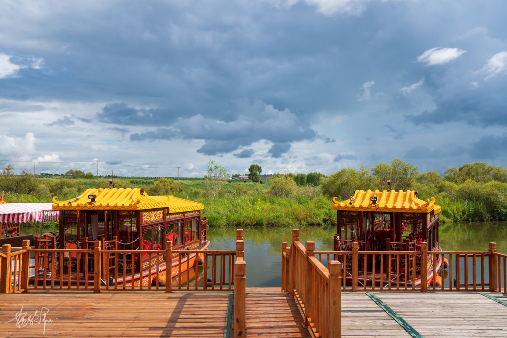 山水相依的温泊,是 五大连池 不能不去的一个景点,被誉为“火山九寨”。我们踏上了前往温泊的游船,船只在石龙河上游荡,蓝天白云倒映在河面上,远处蓝天白云与乌云同时存在,很快便来到了码头。