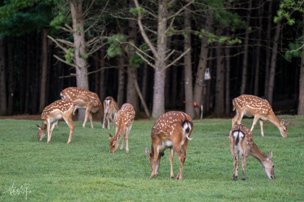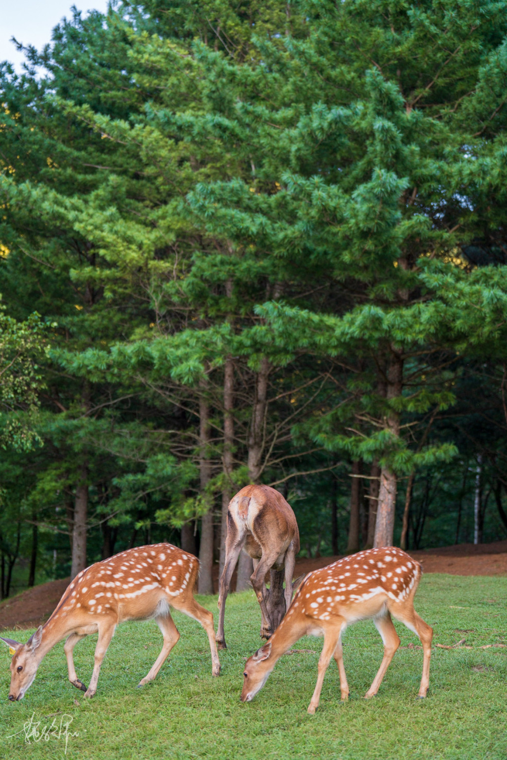 实话说,我一开始踏进金山鹿苑,我就想这有啥?但当我花了一个下午的时间走进它,慢慢爱上了这片草地、森林与小鹿。金山鹿苑占了大半个山头,半开放式地放养小鹿,有天山马鹿、梅花鹿等等。