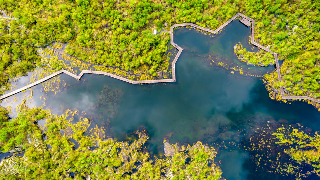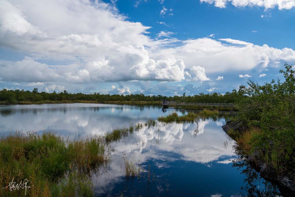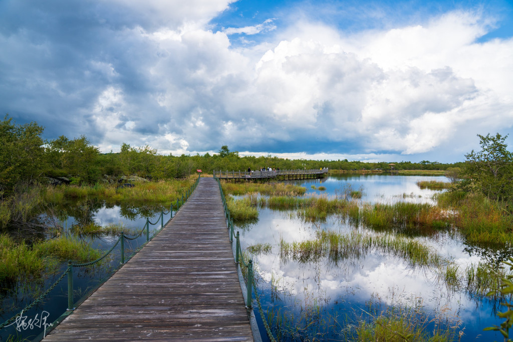 下船以后正是游览温泊,温泊里面最出名的三个点:丽泊、晶泊与碧泊,可以漫步在已经修好的木栈道上一一观赏。碧泊湖水湛蓝,走近时直接惊呆了,恰好天上的乌云远离,来了一些蓝天白云,天与 水里 的倒影形成了一幅绝美的画面。