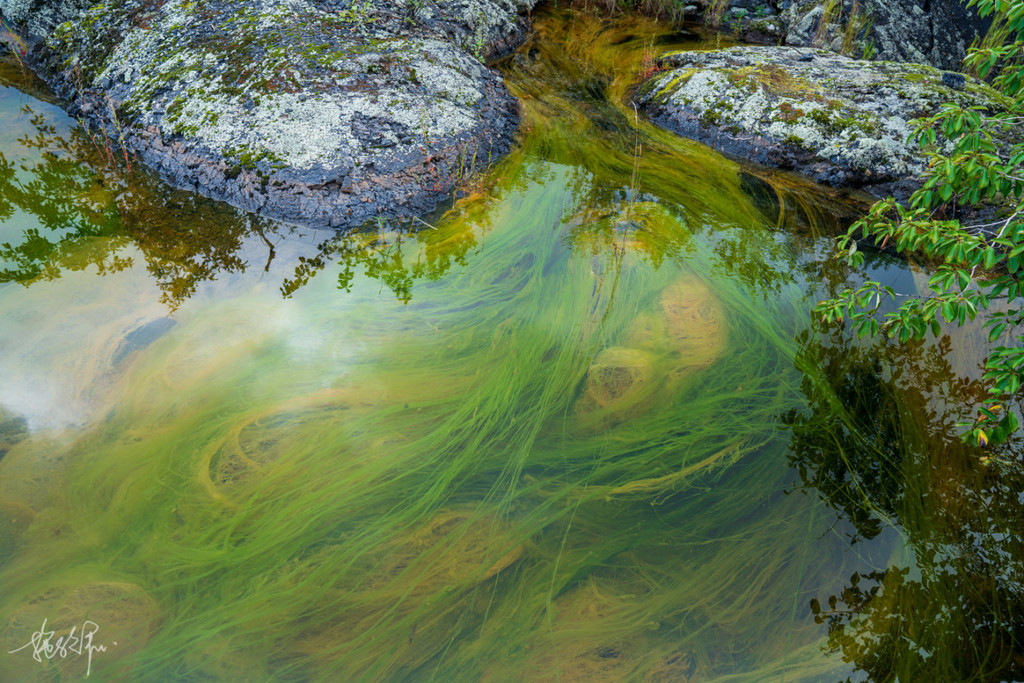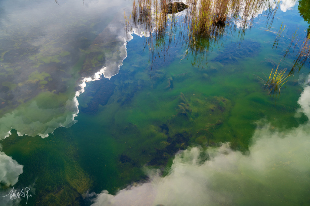 再往前走就是号称“小九寨”的丽泊,今天是天气不够nice,没有遇到好看非常好看的丽泊。如果阳光正好,照射在丽泊上,会呈现出非常好看的颜色。这是因为温泊里含有多种矿物质,在矿物质不同、含量不同的情况下,会呈现出五颜六色。并且这里还有许多藻类,不同类型的藻类,有的像蘑菇有的像头发,很特别的。