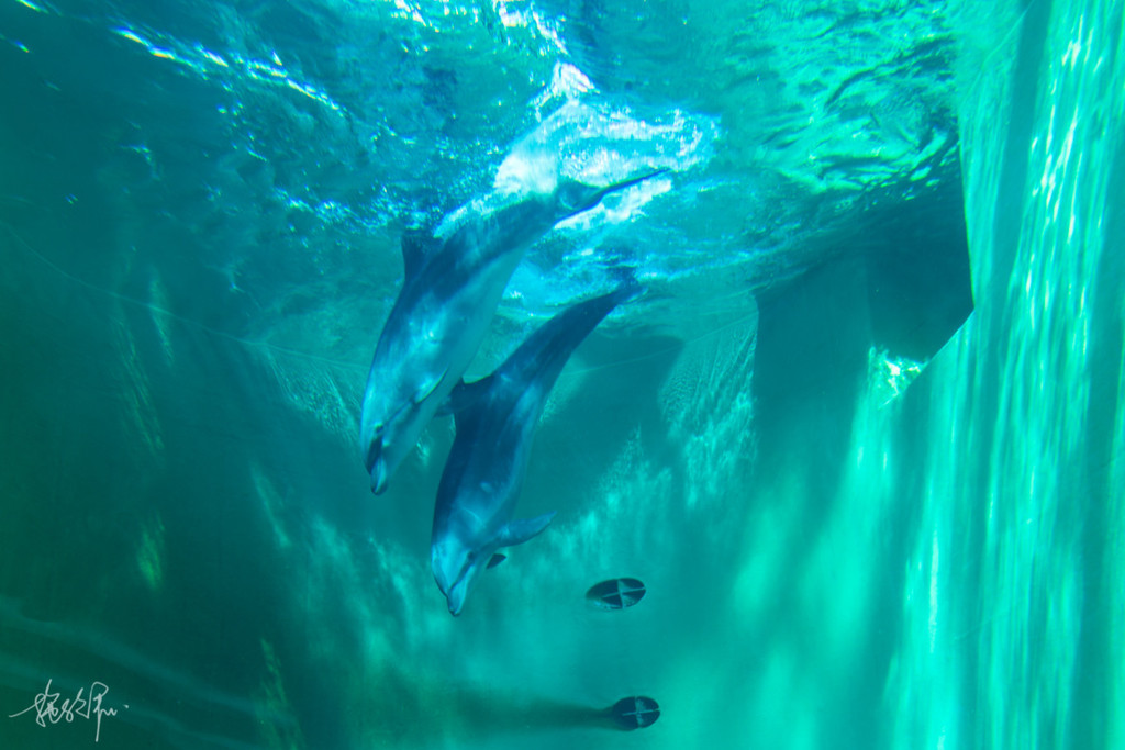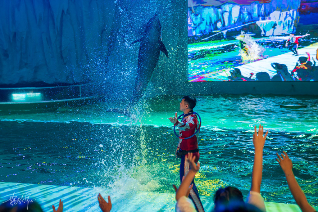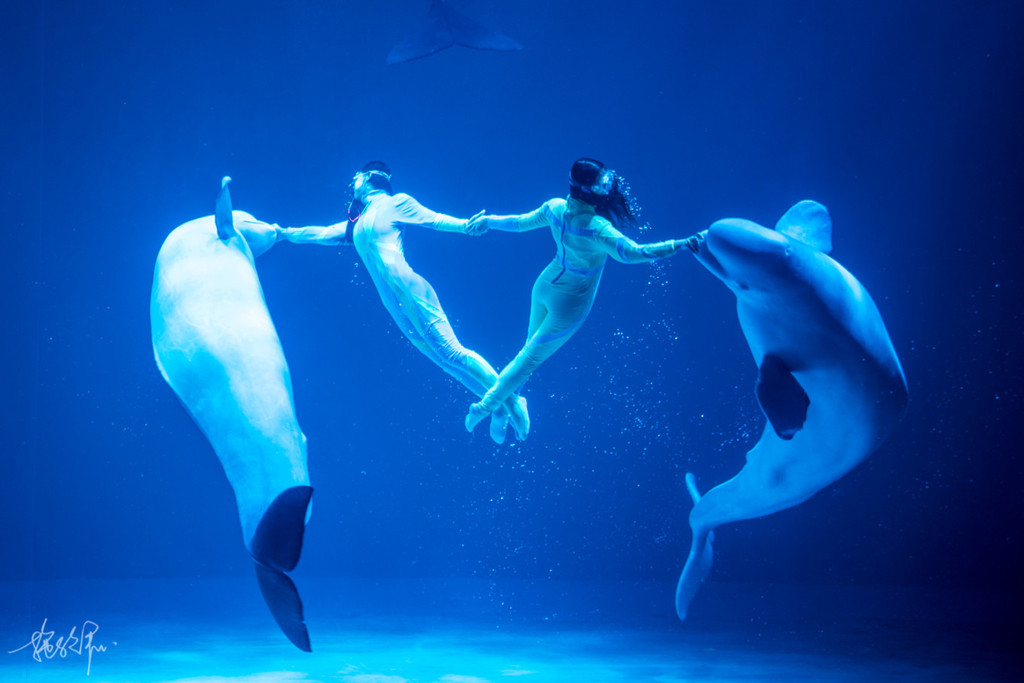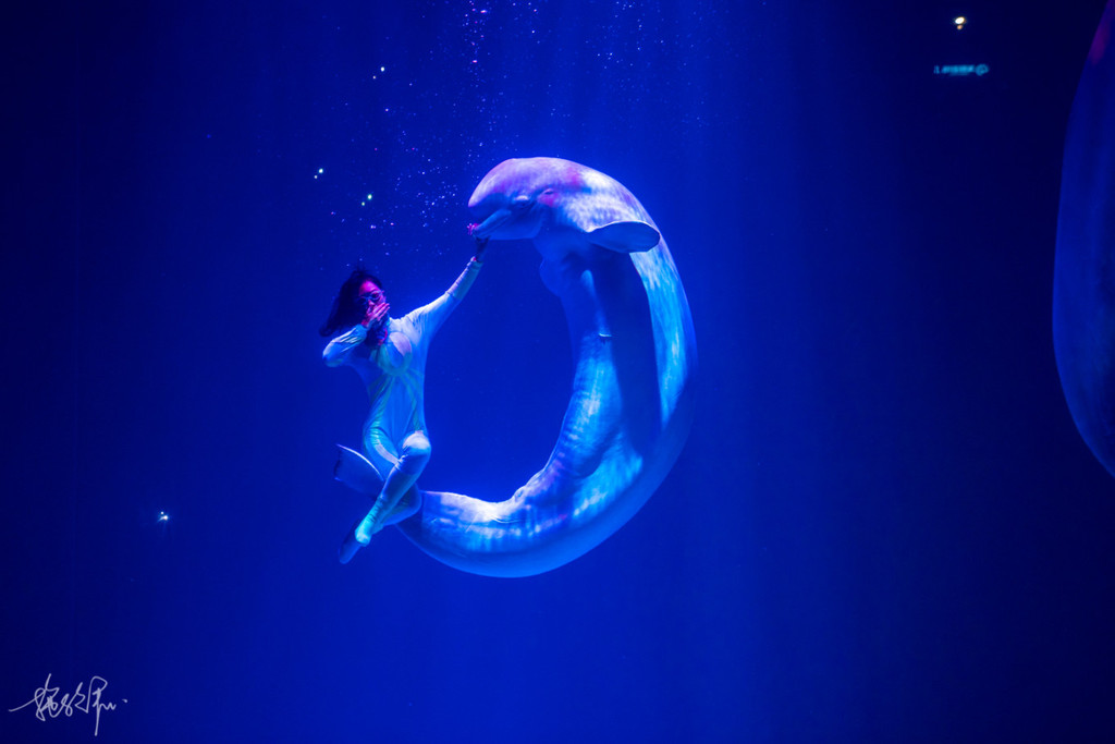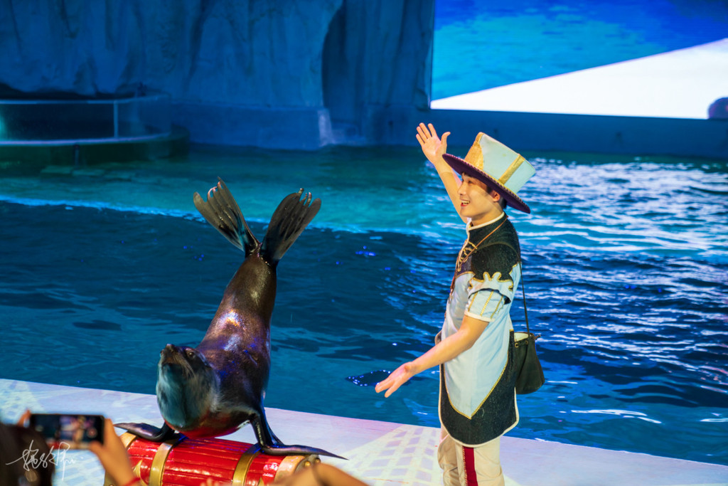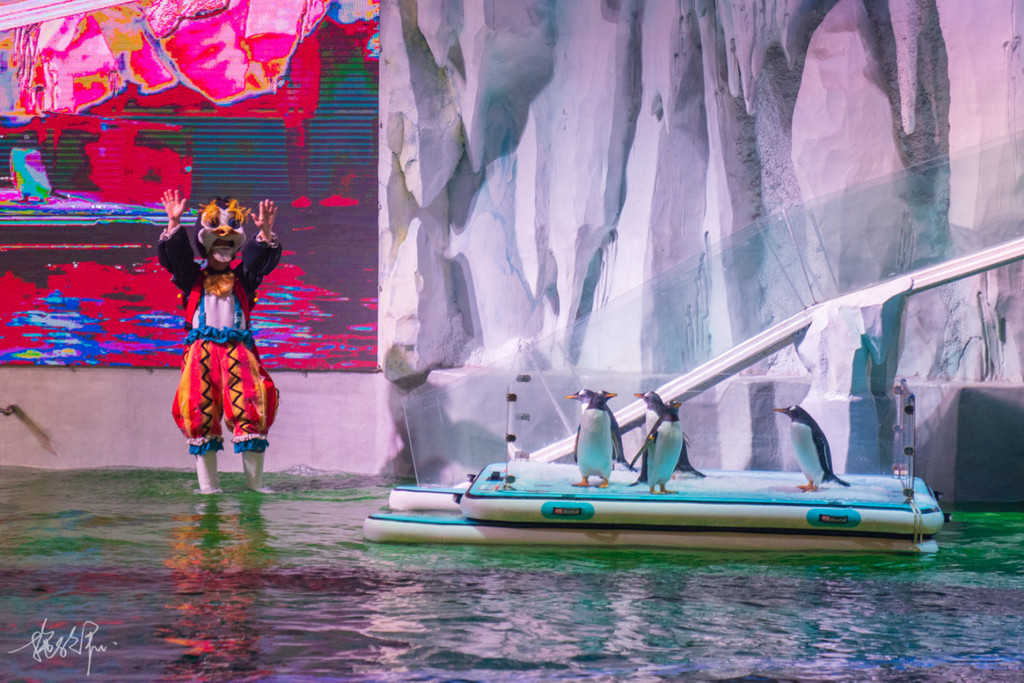 整个极地公园最值得看也是名气最大的是“海洋之心”,是一场轰动了世界的白鲸水下表演秀,这是一个高难度的由两位驯养师与白鲸宝贝一起完成的动作。在一片蓝色的汪洋之中,人与白鲸拥吻,整个画面呈现出心形,看完了这场白鲸秀整个人都被治愈了。