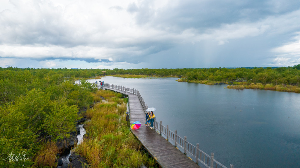 下山之后乘坐景交车来到天赐湖,在湖边享清风徐徐,天气变得很快,上一秒还是晴空万里,下一分钟开始刮起了风,待再到森林浴场和黑瞎子岭时,已经淅沥沥下起了雨。身上的牛仔外套都不太抗冻,天然的避暑胜地。
