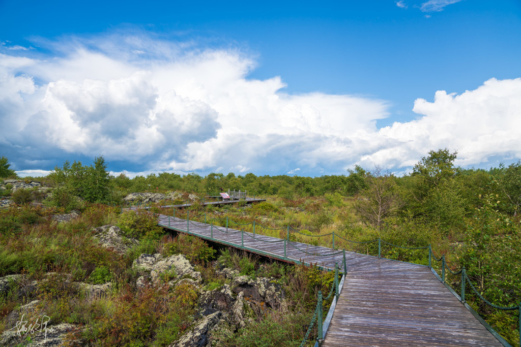 继续往山上走,来到火山口顶。火山口修了一条步行栈道,可以绕一圈登高望远,看着远处的 五大连池 中的三池,也可以俯瞰火山口下那一颗颗矮小却生长了上百年的小树。这里纯粹就是一个熔岩世界,树木所需的土壤是靠风一天天吹过来累积起来的,很不容易才能长成一棵树呢。