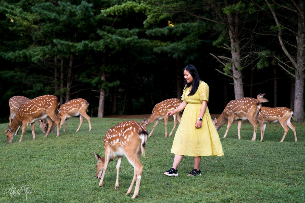 金山鹿苑很适合亲子游玩,带家里的小宝贝来这儿亲近自然。最好是选择早晨抵达金山鹿苑,小鹿们大概率都在草坪上,早上没有什么游客可以自在地跟小鹿合影。下午游客太多,小鹿就都跑森林里去了。建议穿搭衣服的色彩:白色、牛仔帽,比较森系的穿搭。