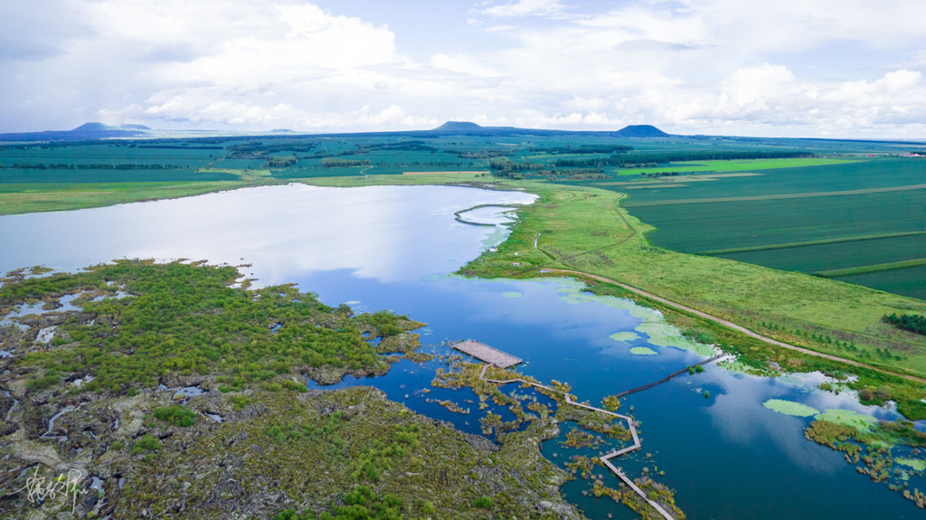 五大连池 很大,真的,有1060平方公里!它是小 兴安 岭山地向松嫩平原的转换地带,景区内有14座火山群峰耸立在此,有火山熔岩、湖泊、河流与品质十分优良的矿泉水。
