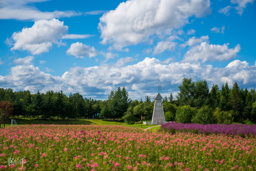 在这拥有了120万株醉蝶花的醉蝶花谷里,我们看到的简欧风建筑, 荷兰 风车、尖顶小木屋,漫步在花海丛中,来到了湖畔休憩处。眼前的湖泊倒映着天上的蓝天白云,我们在树荫下休息,风轻轻吹过,享受着这宁静的时光。