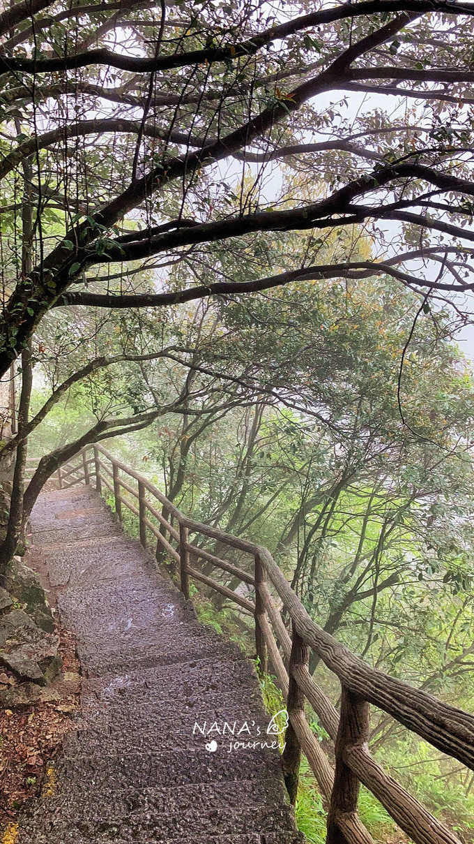 此时山里的雾更浓了,下雨天还要撑着伞爬山,着实是对人的考验呀!
