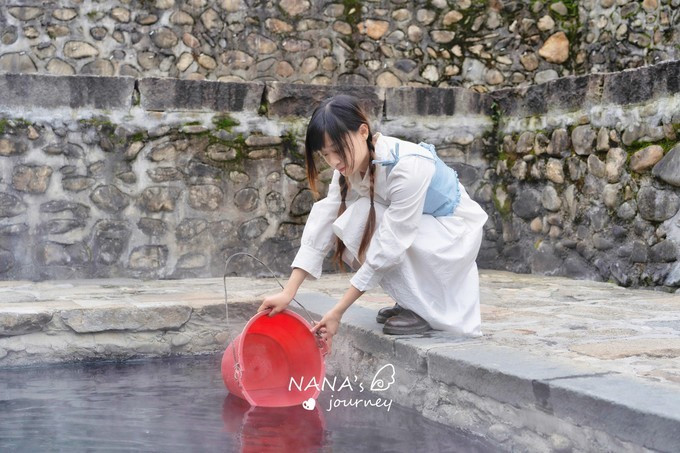 在来之前就听说,以前温汤镇的古井,是免费开放,当地人都喜欢带着桶,装了温泉水,就在一边直接坐下泡脚了,很是惬意。虽然如今古井成为打卡景点,但我们仍能想象的到当时的盛景。