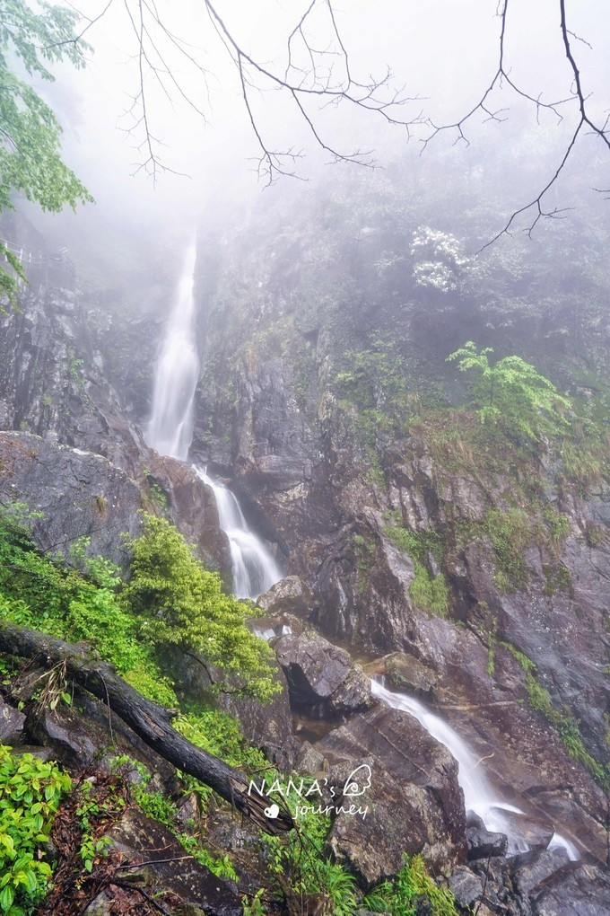 云谷飞瀑,明月山最大的瀑布,也是 江南 第一高瀑,高达119.57米, 宜春 古八景之一。我们站在瀑布之下,感受瀑布的洗礼,云雾围绕着,瀑布仿佛从云雾中而来。