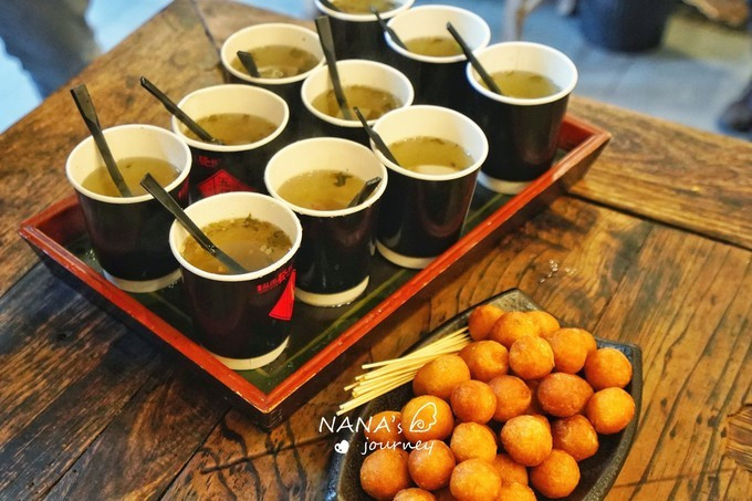迎接我们的首先是当地招待客人的五仔茶,这种茶很是神奇,竟然是咸味的,感觉更像是汤。