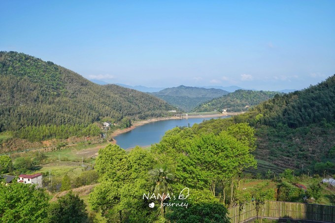 雨过天晴后,民宿的平台还能看到远处的水库,青山绿水,好一个惬意了得。