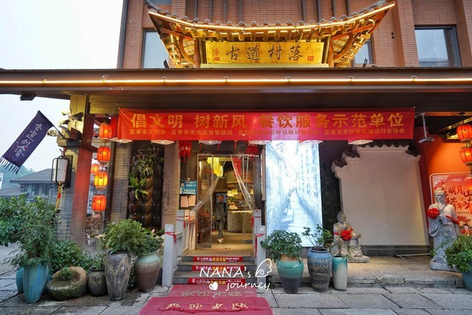到了 宜春 温汤镇,就不能错过这里的地道味道,我们第一餐的晚饭就选择在了古道村落享用。古道村落在古井泉街的城楼处,和古井泉街统一的设计风格。