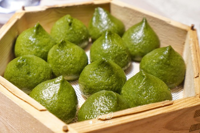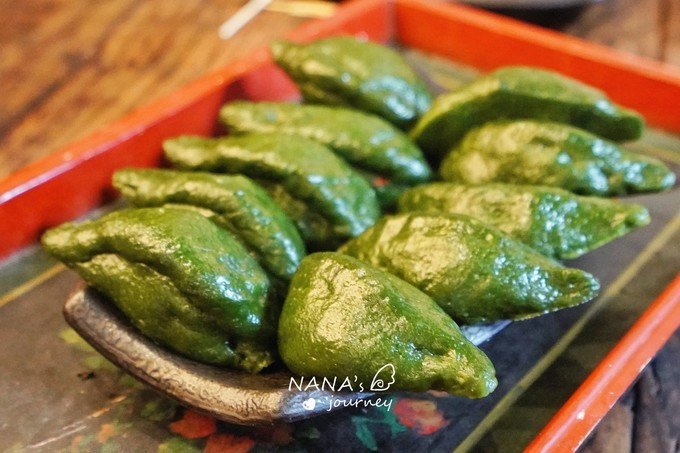豆沙馅的青团,据说也是他们当地家家户户这个季节一定要品尝的食物。