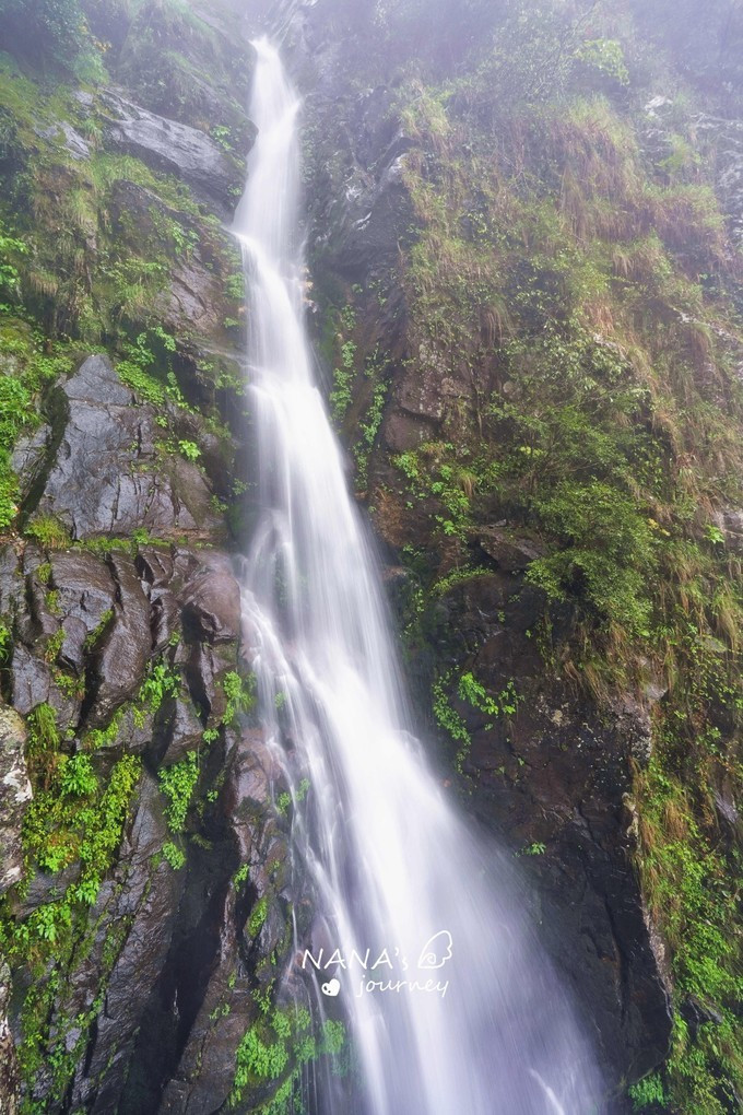顺着陡峭山路往下走,不一会右侧便出现了和我们一样在往下前进的玉龙瀑,我看看看它,它回应下我。这条也是这几大瀑布中最长的一条,不急不缓,如果用现代词形容,那肯定是“佛系”了。