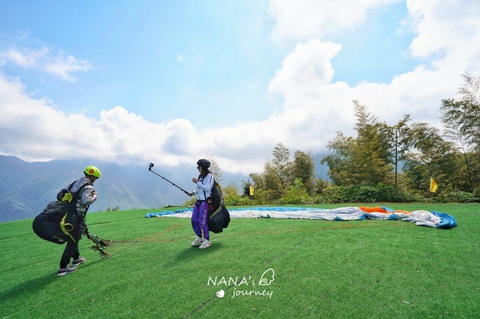 小伙伴已经准备就绪,伞已经铺在草地,滑翔伞是有专门的教练带飞的,我们只需享受好美景即可~