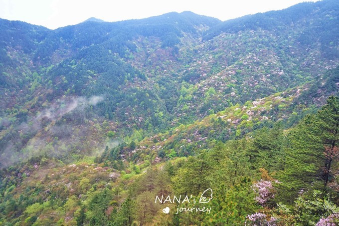 而春天,也正值高山杜鹃花开放之时,景色迷人,如痴如醉。配上点烟雨,又是另一番感受。