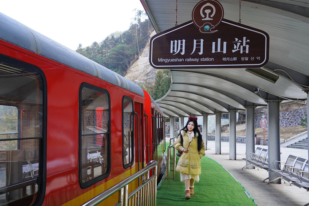 搭乘明月山高山观光小火车,也比较有意思,大家先要到明月山站里面,然后再乘坐高山电梯从2楼直达一楼,别看电梯只有一层,垂直落差却有51米,相当于20层楼的高度,所以搭乘这一层电梯的时间,也相对平时要长一点哦!