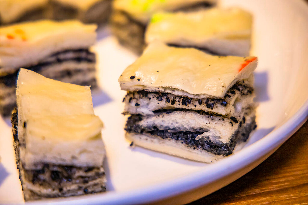 在很早以前,因“发糕”为“福高”的谐音,寓“年年发、步步高”吉祥之意,成为当地老百姓喜宴席上的必备品。制作过程中,加入适量糯米酒酒糟,发酵制成。黑芝麻与猪油香味纠缠碰撞,闻上去鲜香扑鼻,一口咬下去甜而不腻、糯而不粘。