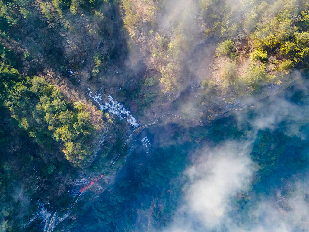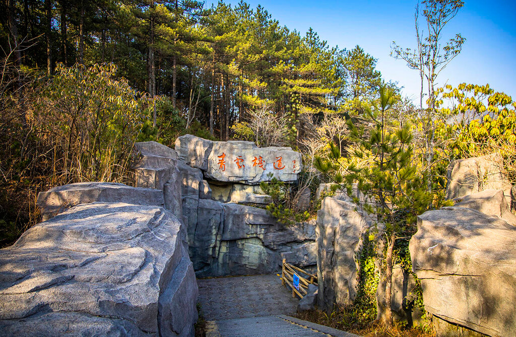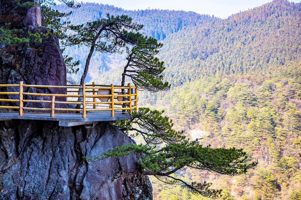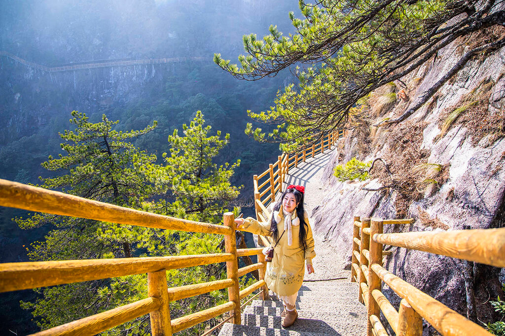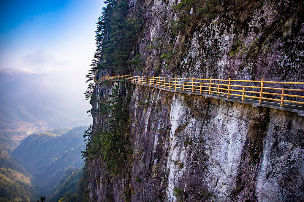 青云栈道是明月山青云景区的重要景观长廊,悬空栈道长1460米,因常年云雾臻绕,行走之上,有平步青云之感。站在观景平台上,俯瞅群山,可感造化神奇。