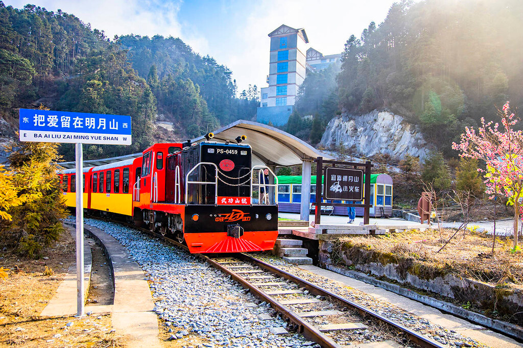 》明月山高山小火车,大陆第一,世界第三明月山高山观光小火车,大陆第一,世界第三的高山小火车,线路长5公里,穿梭在海拔1600米的山巅,是连接明月山旅游区和羊狮慕景区的美丽通道。