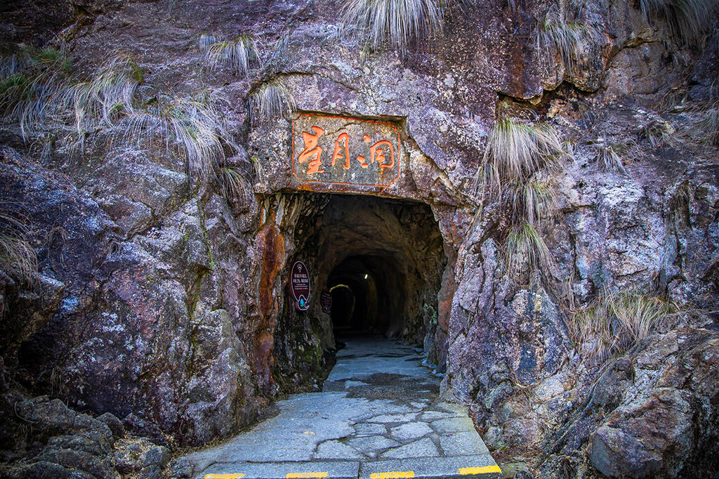星月洞位于海拔1500米的明月山顶,长150米,是一天然石洞,洞内冬暖夏凉,四季如春,水溪漏动,石径贯通,迂回曲折。穿洞而出后就是青云栈道。