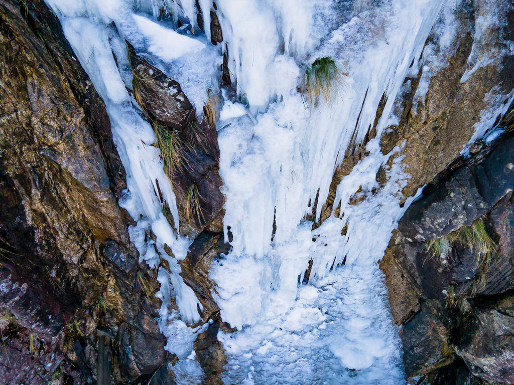 明月山景区真不愧是五 A 景区,这里奇、险、峻、秀! 青云栈道给我的感触也是非常震撼的,在栈道上还会偶遇这个挂在山间的”冰瀑“,给人的感觉十分壮观。所以大家都说:"不上青云栈 ,枉登明月山"。