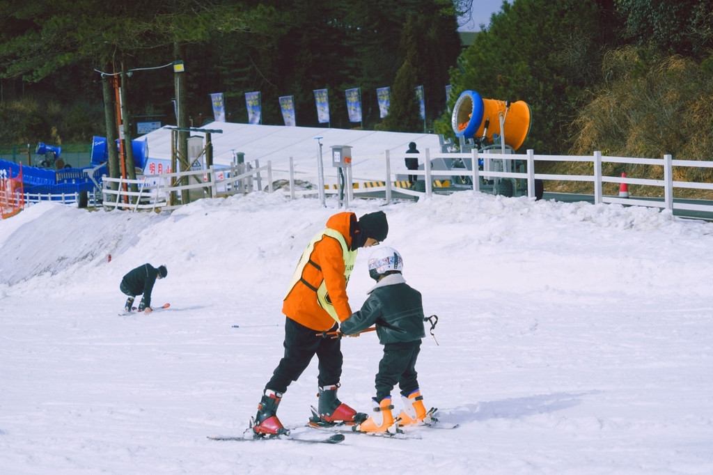 在滑雪场里有单板、双板供游人选择。如果你是一点基础都没有的滑雪“小白”,那么建议滑双板。如果你有一点滑雪基础,不想继续在双板的道路上精进,那么不妨试一试滑雪单板。在滑雪场内,配置有专门的滑雪教练,可以根据自身需求决定是否需要请教练学习。