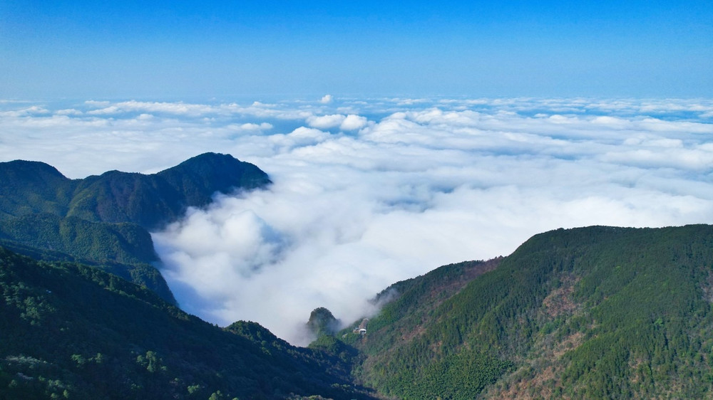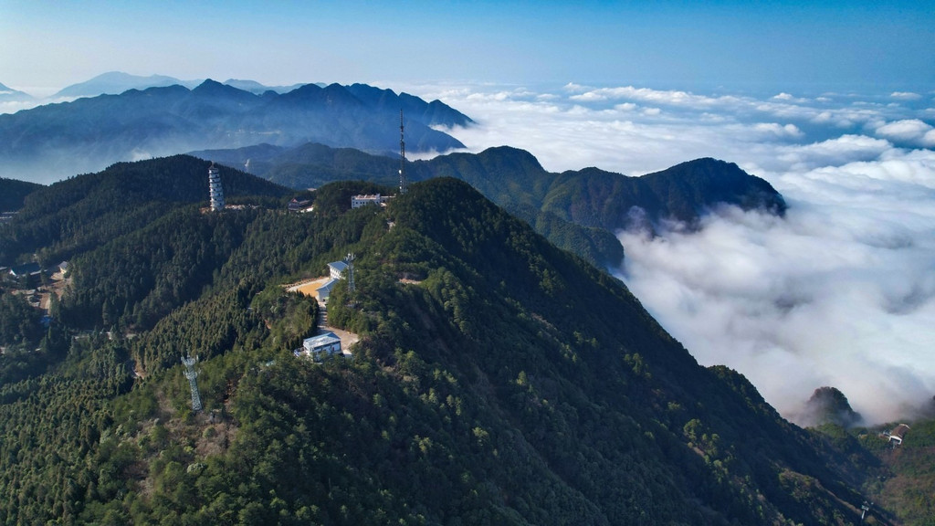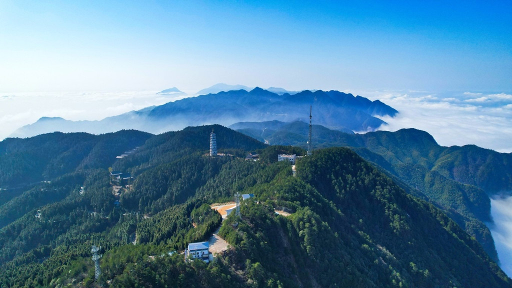 山不在高,有“仙”则灵。江西明月山最高海拔1736米,常年云雾缭绕,有着“一山有四季,一里不同天”的奇特景色。冬日暖阳下,一半青山,一半云海。青山云海之下,是一个银装素裹的滑雪场。