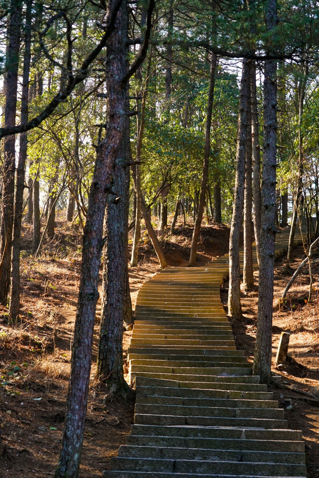 徜徉在明月山的冬韵里,独享明月山的恬静与悠然。明月山的妩媚是日落黄昏后金阳浸染云海峰林,绵延起伏的山峦坠入橘色的海洋如梦如幻,娇艳动人。明月山的秀丽是冬日里郁郁葱葱的松林森涛,云雾缥缈之下渐露山尖,像是含羞少女着轻纱而来,随风拂动衣袖带走一片云彩。明月山的奇险是那绝壁览胜景的青云栈道,常年云雾缭绕,行走其上,有平步青云之感。