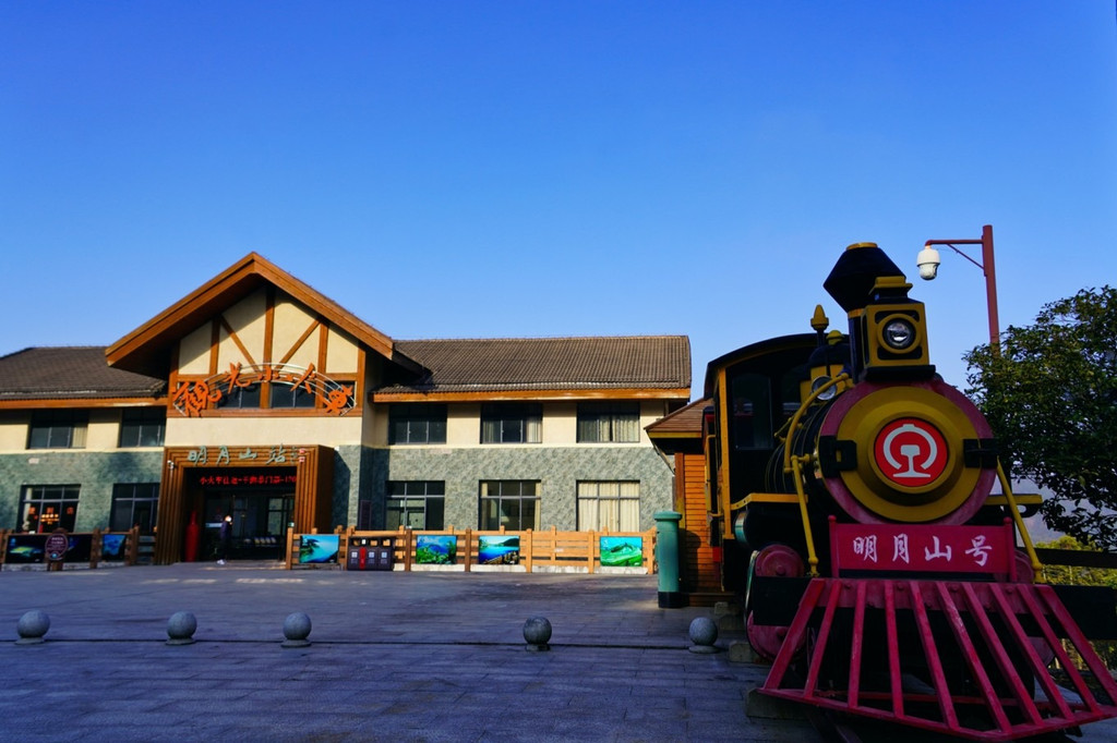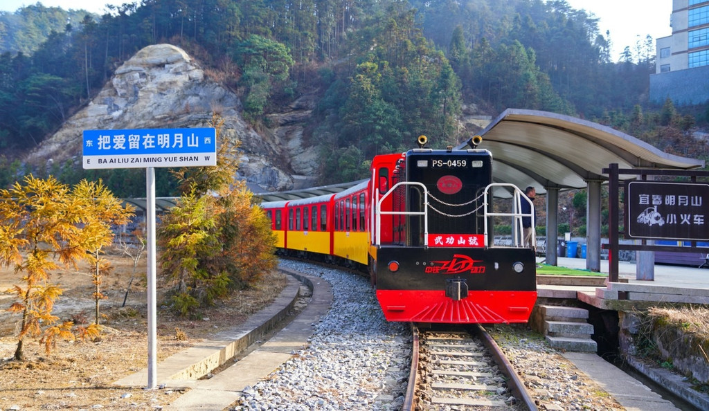 这趟明月山高山观光小火车线路全长约3.95公里,小火车不急不缓地行进在高山峻岭之中, 目的是为了方便游人们观光欣赏沿途美景。