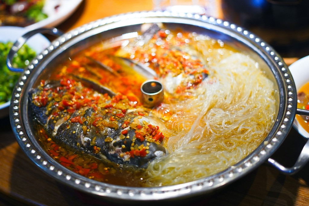 来到温汤民俗文化园,一定要吃店里的招牌菜温汤发糕,吃起来甜糯可口,回味无穷。此外,我们还尝试了店里的剁椒鱼头、炒螺丝、小炒牛肉、扳盐羊脚、养生百合肉丸汤……每一道菜的摆盘都很精致,菜肴口味甚佳。